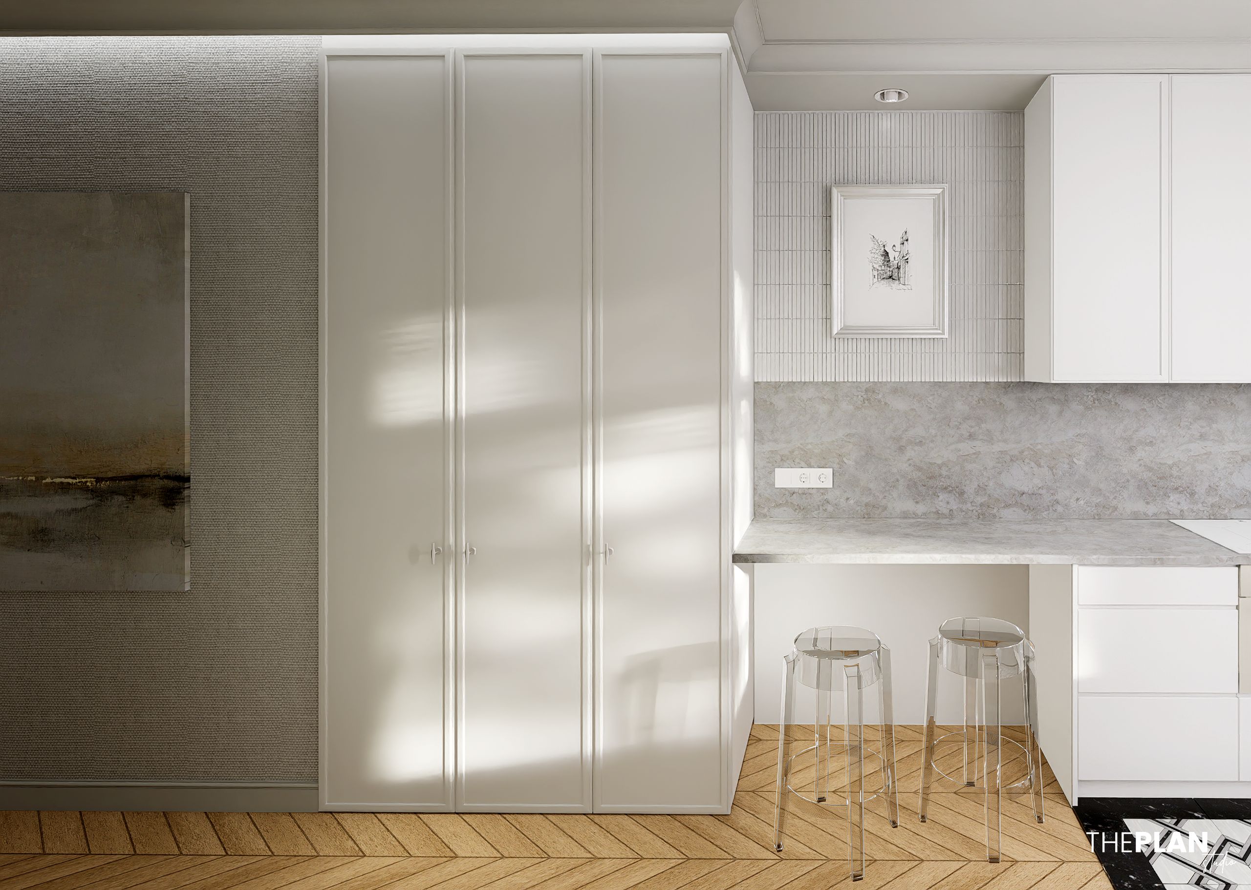 Apartament na poddaszu przedwojennej kamienicy w Kudowie Zdrój stanowi dla Inwestorów odskocznię od zgiełku miasta. Zaprojektowana w sposób łączący elegancję stylu angielskiego i nowoczesność Modern Classic.