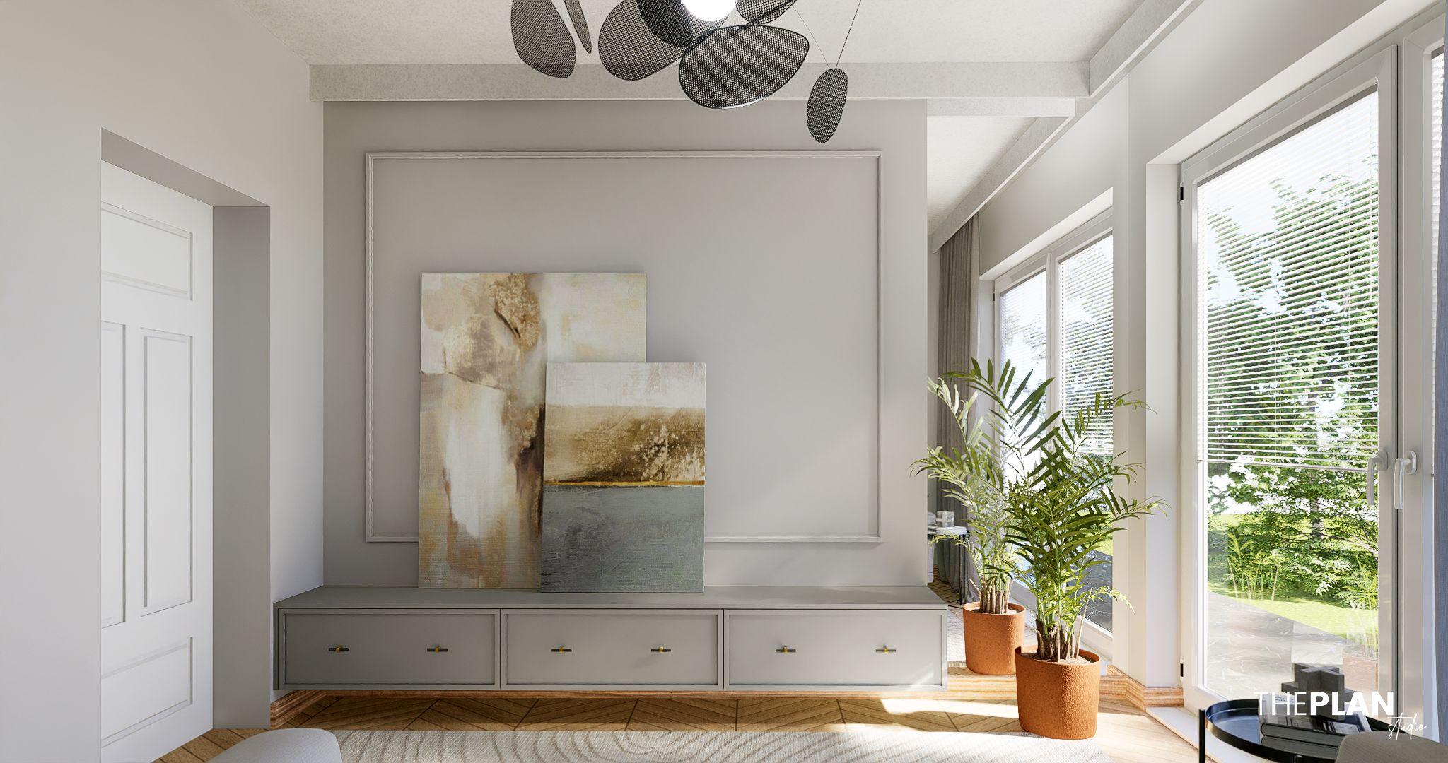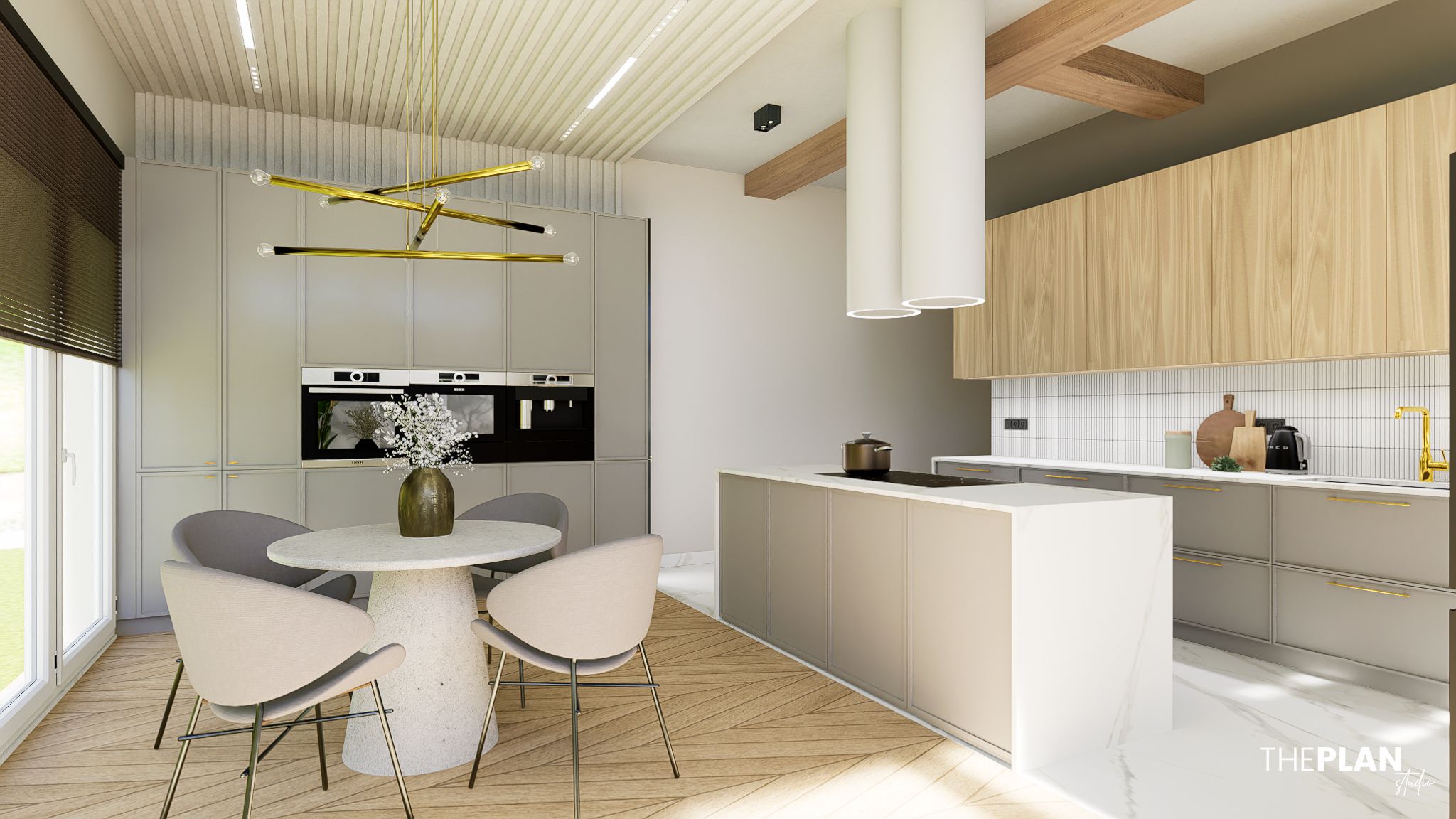 Wnętrza zaprojektowane w klimacie łączącym Modern Classic i styl nowoczesny.