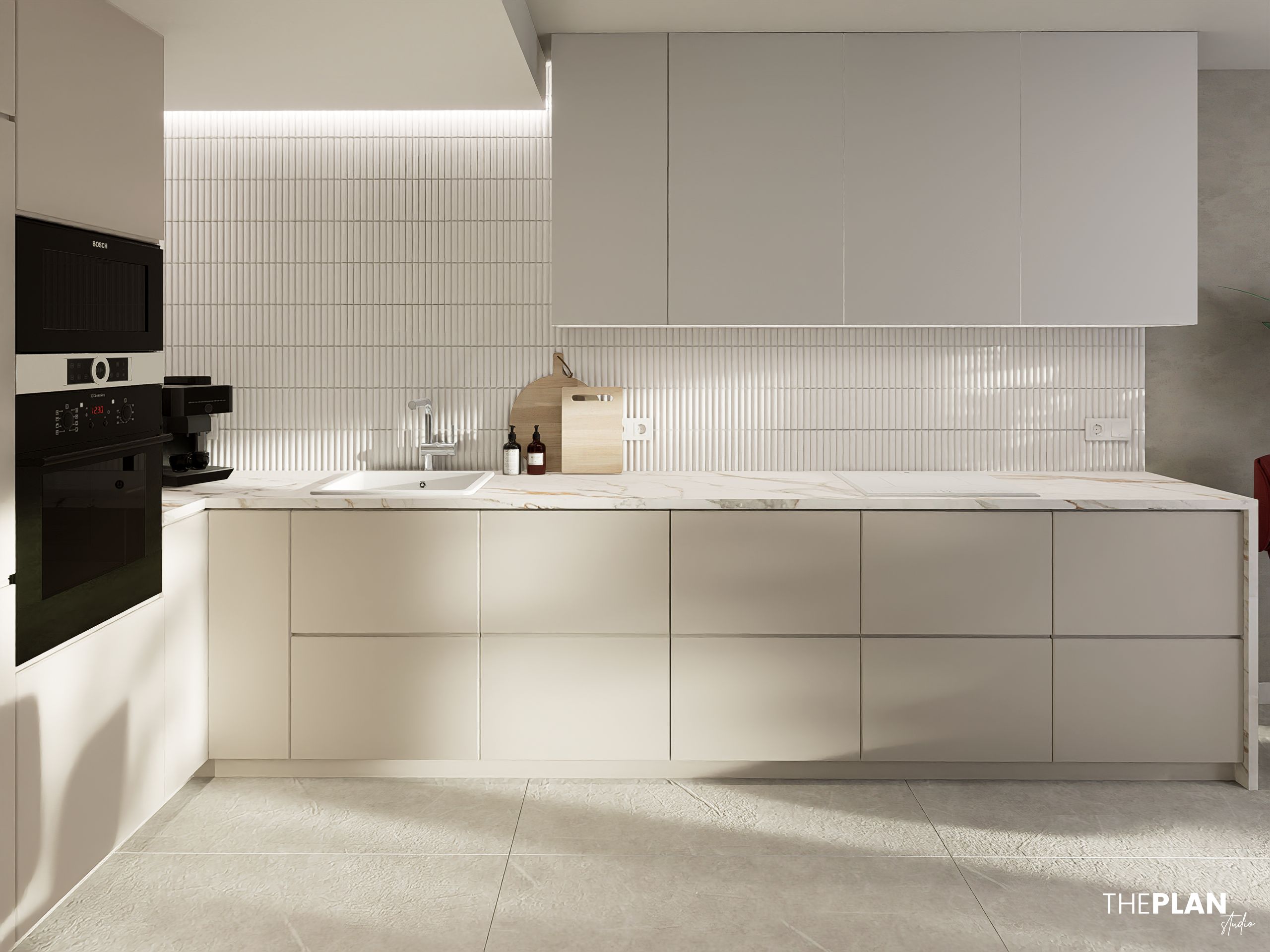 Wakacyjna rezydencja Inwestorów w Hiszpanii. Dwupoziomowy apartament został zaprojektowany w nowoczesnym stylu. Całość jest utrzymana w jasnych barwach z czerwonymi akcentami.