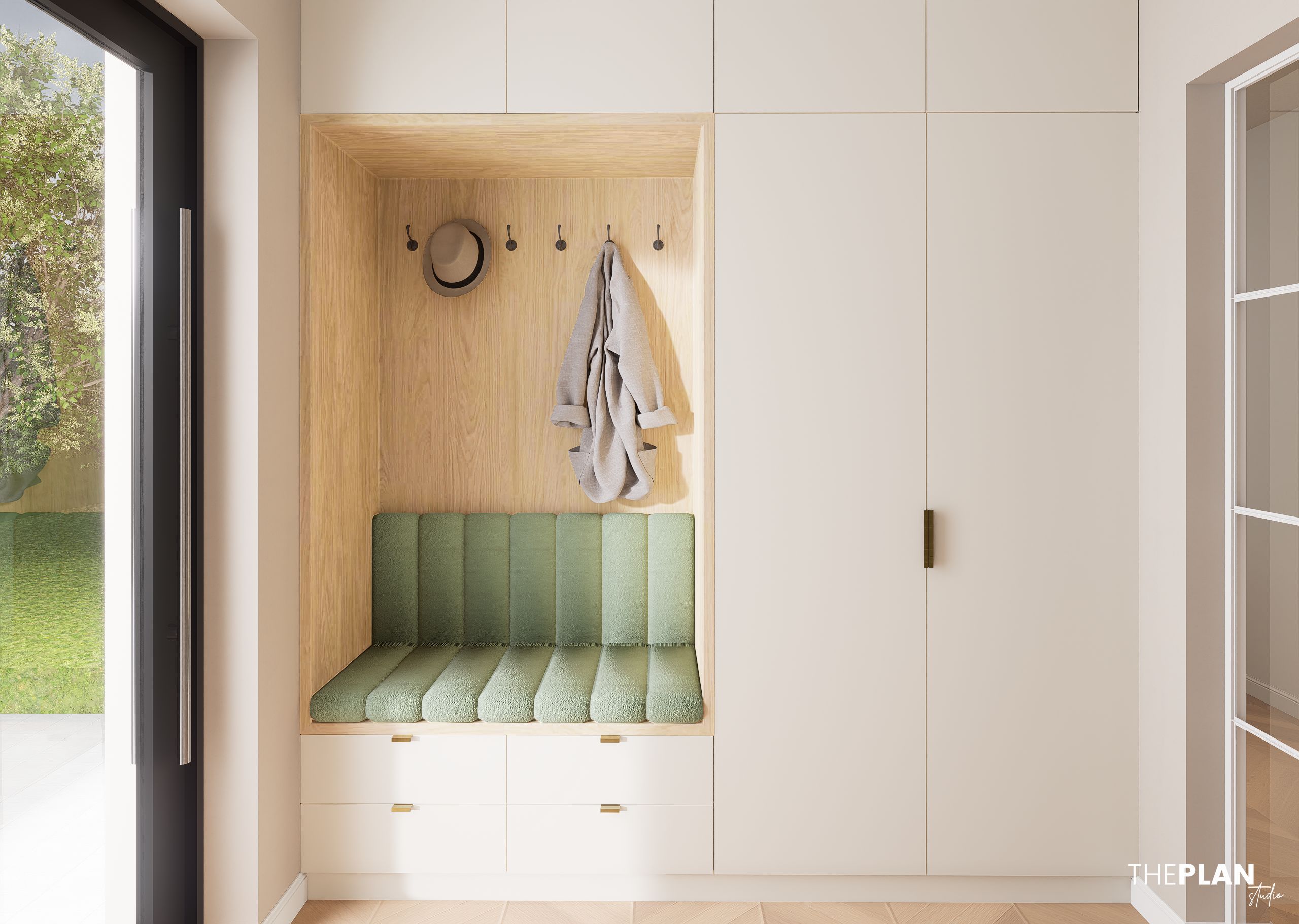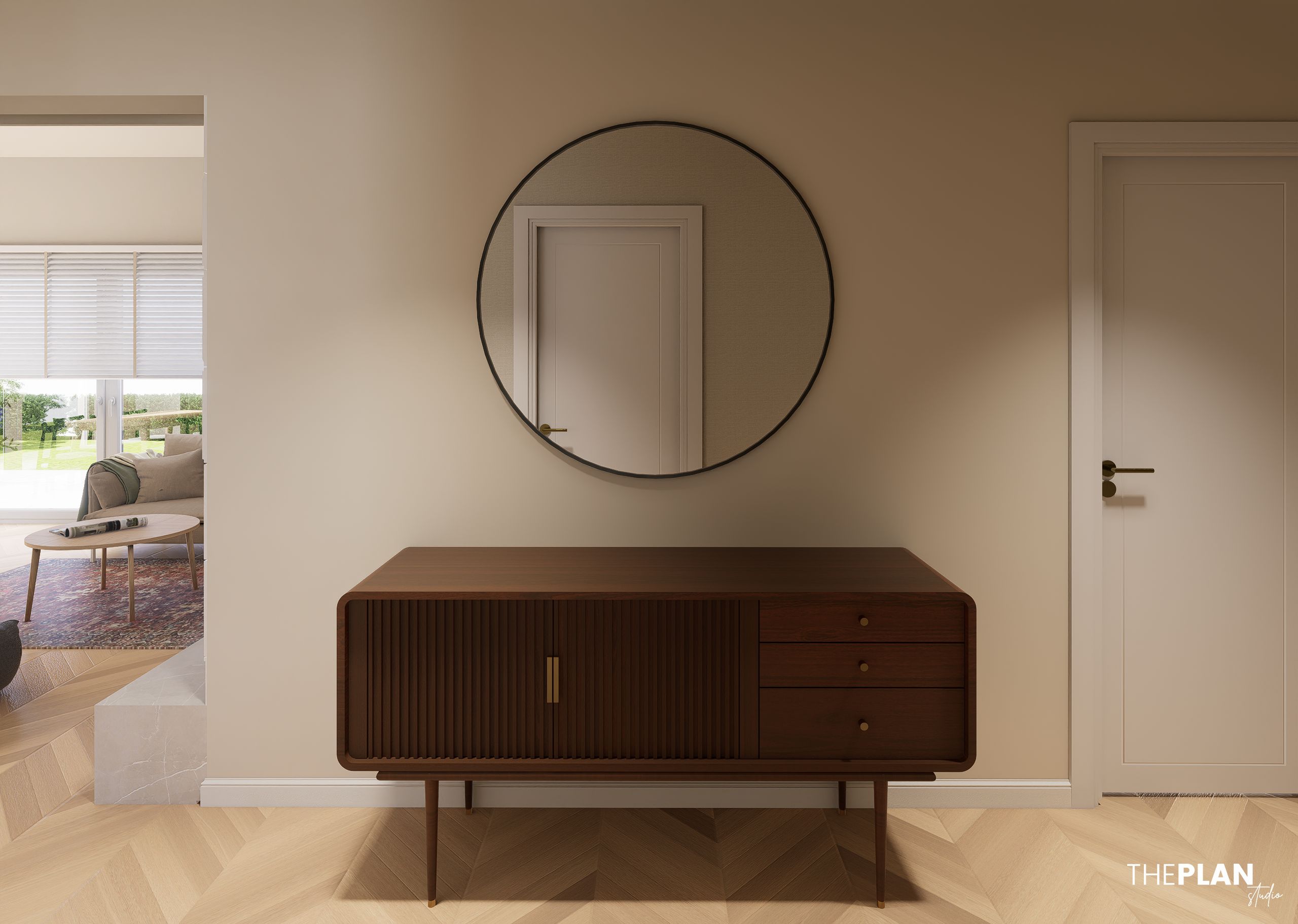 Dom w okolicach Tomaszowa Mazowieckiego został zaprojektowany w nowoczesnym stylu z wyraźną inspiracją elementami modernistycznymi. To przykład łącznia nowego z akcentami retro w przytulnym wydaniu.